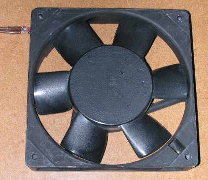 An easier option might be to get a DC fan. I choose a 12VDC fan (Figure 2) this way I can power the fan off of one my power supplies. I don’t run anything live while I solder so using a power supply during soldering to power a fan does not affect me. The added benefit is that I can use the variable voltage feature in my supplies as a speed control. This reduces the need to build a power supply and speed controller as well as dealing with other safety issues that using full line voltage AC would have presented.